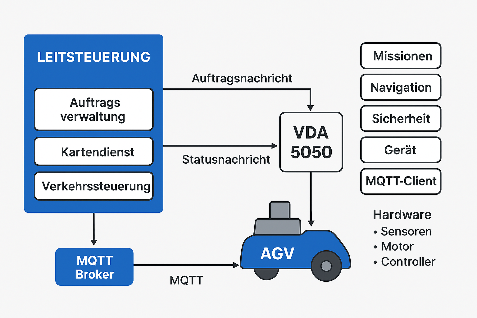 Standardisierte Schnittstelle ermöglicht reibungslosen FTS-Mischbetrieb: Dank der Verwendung von VDA 5050 lassen sich fahrerlose Transportfahrzeuge (AGV) von Melkus Mechatronic, rasch und unkompliziert in bestehende fahrerlose Transportsysteme integrieren. Umgekehrt können auch VDA5050-kompatible Fahrzeuge anderer Hersteller in Gesamtsystemen von Melkus Mechatronic verkehren. Diese Multi-Vendor-Lösung ermöglicht Kunden durch die Möglichkeit heterogener AGV-Flotten ein Cherry Picking auf höchstem Niveau.
