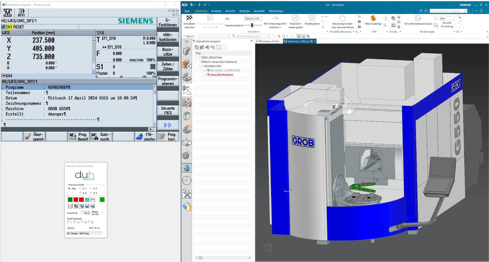 Virtuelles Einfahren am digitalen Zwilling bringt enormen Produktivitätsgewinn: Die HANOMAG Aluminium Solutions GmbH veredelt in Kassel und Baunatal Aluminiumkomponenten für die Automobilindustrie durch Wärmebehandlung und mechanische Bearbeitung. Die d.u.h.Group schuf mithilfe von Siemens Xcelerator Software den vollständigen digitalen Zwilling des Maschinenparks. Damit konnte HANOMAG Aluminium Solutions auf die hauptzeitparallele Erstellung und Optimierung der NC-Programme am Computermodell umstellen und den Maschinenstillstand beim Teileanlauf um 90 % senken.